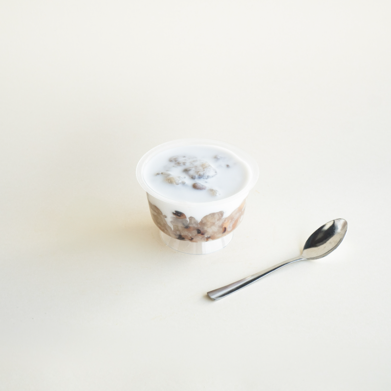 Dessert que l’on retrouve dans toute l’Asie à base de gelée au soja et de lait de coco et de tapioca. Fait maison.